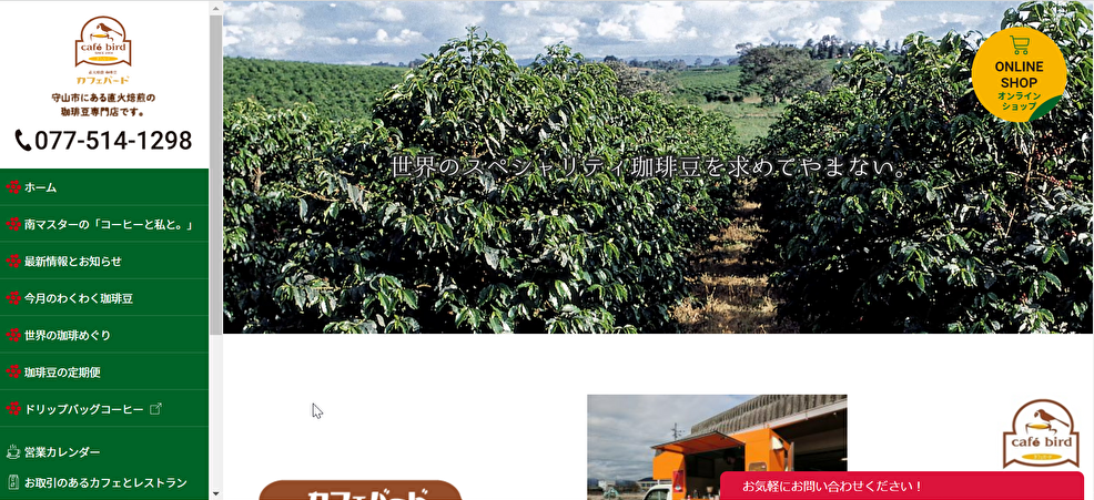 南マスターが焙煎した、いろんなお味の珈琲豆を、毎月一種類ずつご提供する「世界の珈琲めぐり」。カフェバードがお薦めする人気企画です。何が届くかお楽しみ!お気に入りの一杯に巡り合えるチャンスです!そんな世界の珍しい珈琲豆、年間12種類が、あなたのご自宅に!また、カフェバードに移動式コンテナハウス「珈琲カー」登場!毎月、最終日曜日、野洲市小篠原にて出店。詳しくは、ホームページやフェイスブックで、チェックしてくださいね~!