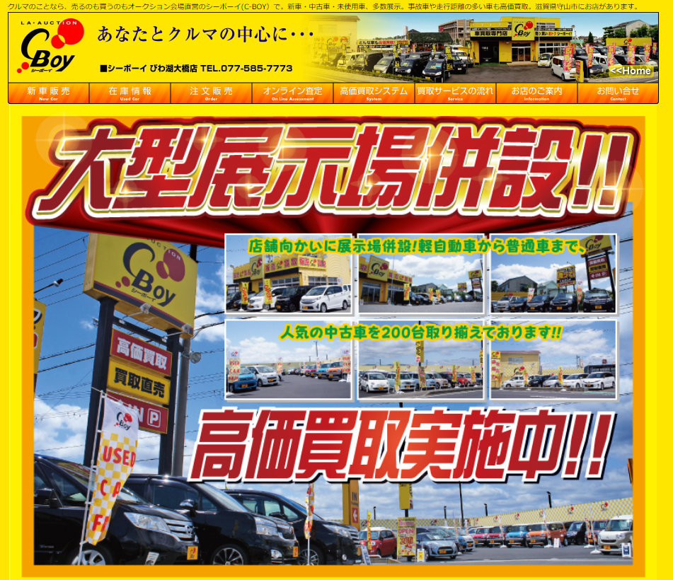 うちのオカンが言うにはな、クルマ、買うならシーボーイ。クルマ、売るのもシーボーイ。めっちゃえーやんシーボーイ。らしいわ。いつも、車が200台。だからあなたが欲しい車と、きっと出会えるはず。また独自の買取販売システムで、他店に負けない高額査定と低価格での販売を実現。だから、まー、いっぺん寄ってみてください!琵琶湖大橋、取り付け道路の「黄色い看板の車屋」言うたら、その特徴はもう完全に、シーボーイしかないですやん!と、オトンも言ってます。