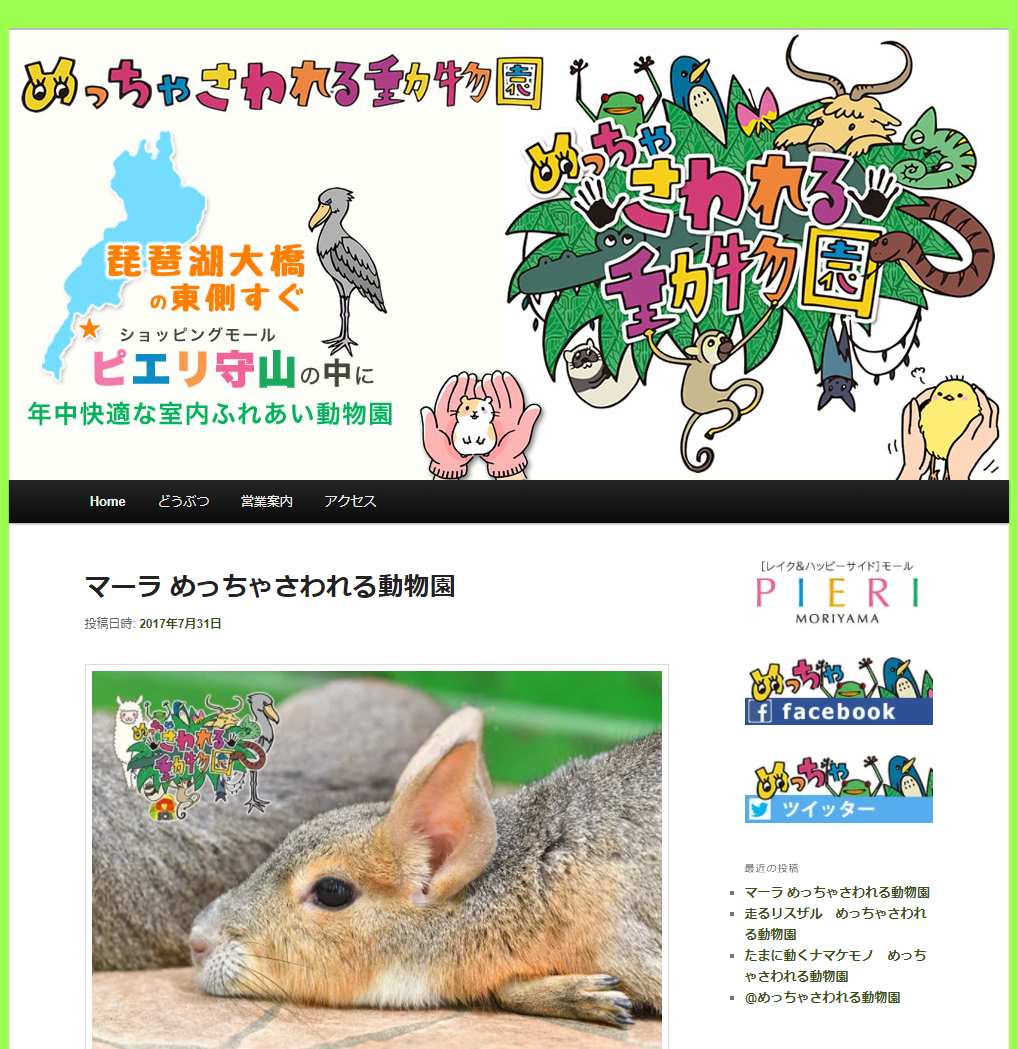 インコもウサギもアルパカも、触っちゃだめって言いません。モフモフ、さわれる動物園。フクロウ、リスザル、ナマケモノ。触っちゃだめって言いません。大人1000円動物園。フェレット、イグアナ、ハムスター、触っちゃだめって言いません。守山、ピエリの動物園。サーバル、コンドル、カンガルー。めっちゃさわれる動物園。けど、シッポ。引っ張らんといてやぁぁ~~~っ!ゃだめって言いません。守山、ピエリの動物園。サーバル、コンドル、カンガルー。めっちゃさわれる動物園。けど、シッポ。引っ張らんといてやぁぁ~~~っ!