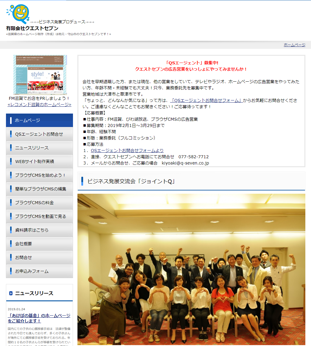 クエストセブンの広告営業をいっしょにやってみませんか!名付けて「QSエージェント」を募集しています。会社を早期退職した方、または現在、他の営業をしていて、テレビやラジオ、ホームページの広告営業をやってみたい方、未経験でも大丈夫!只今、業務委託先を募集中です。営業地域は大津市と草津市です。「ちょっと、どんなんか気になる」って方は、クエストセブンのホームページからお気軽にお問合せください。ご遠慮なくどんなことでもお聞きください!ご応募待ってます!